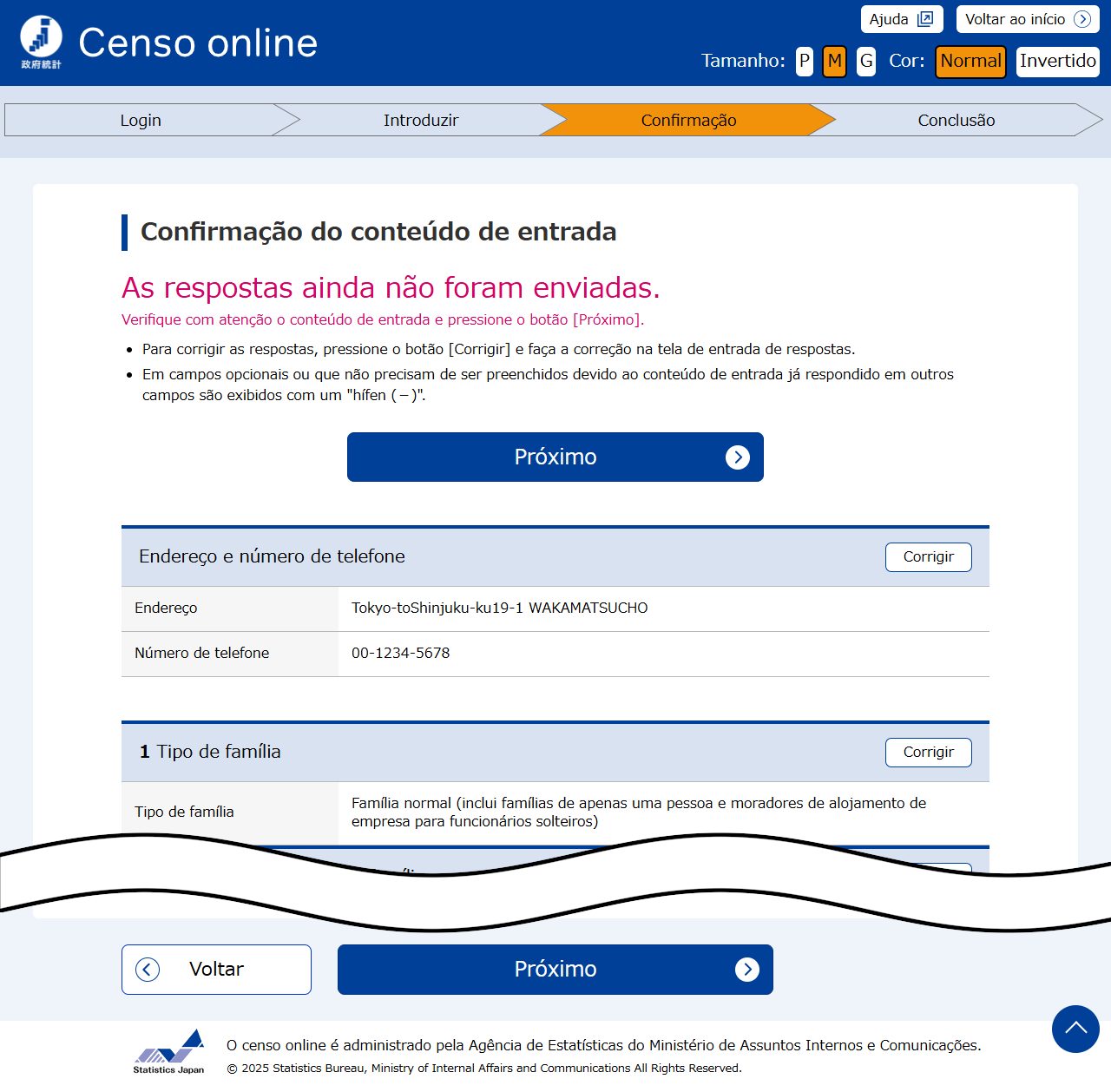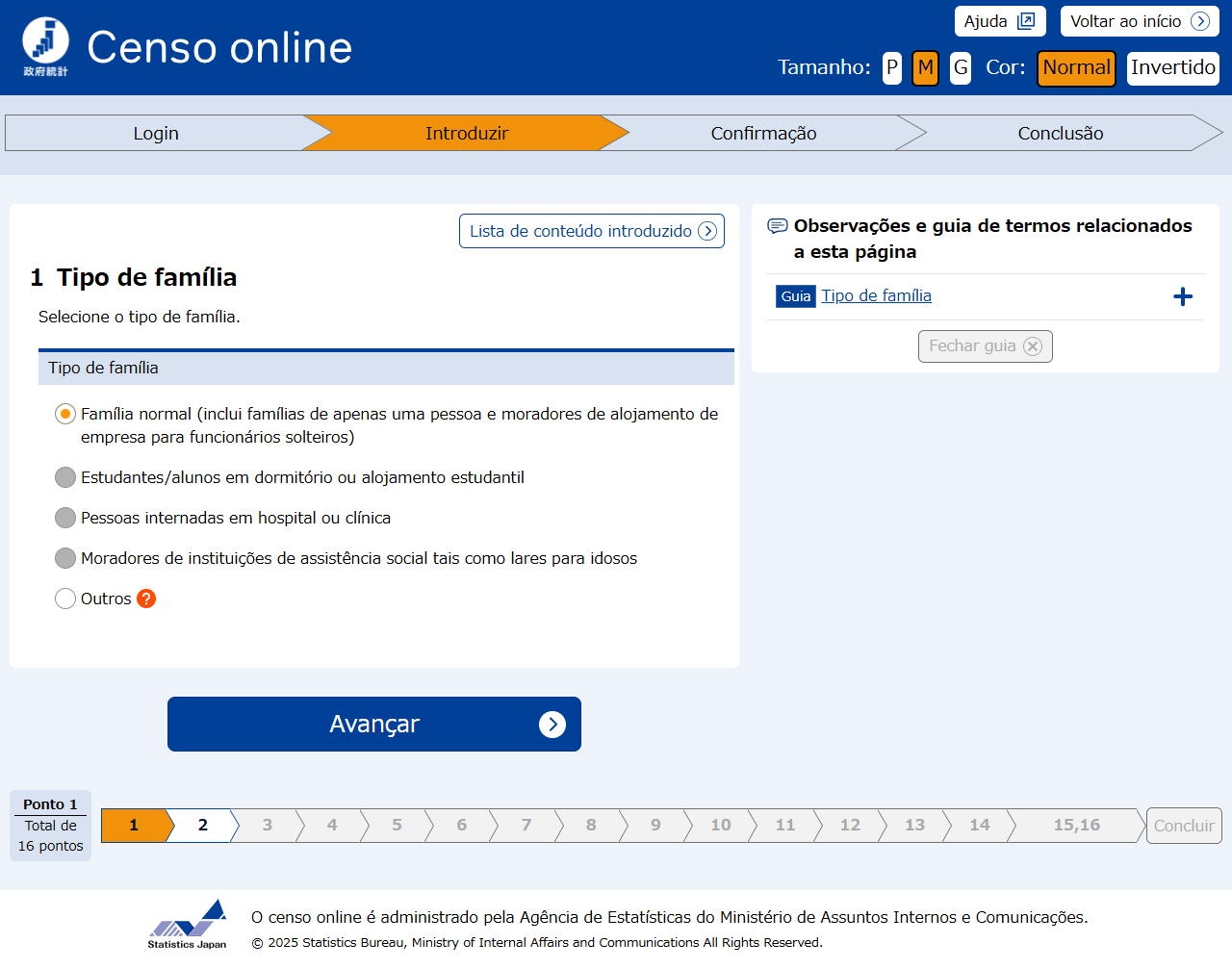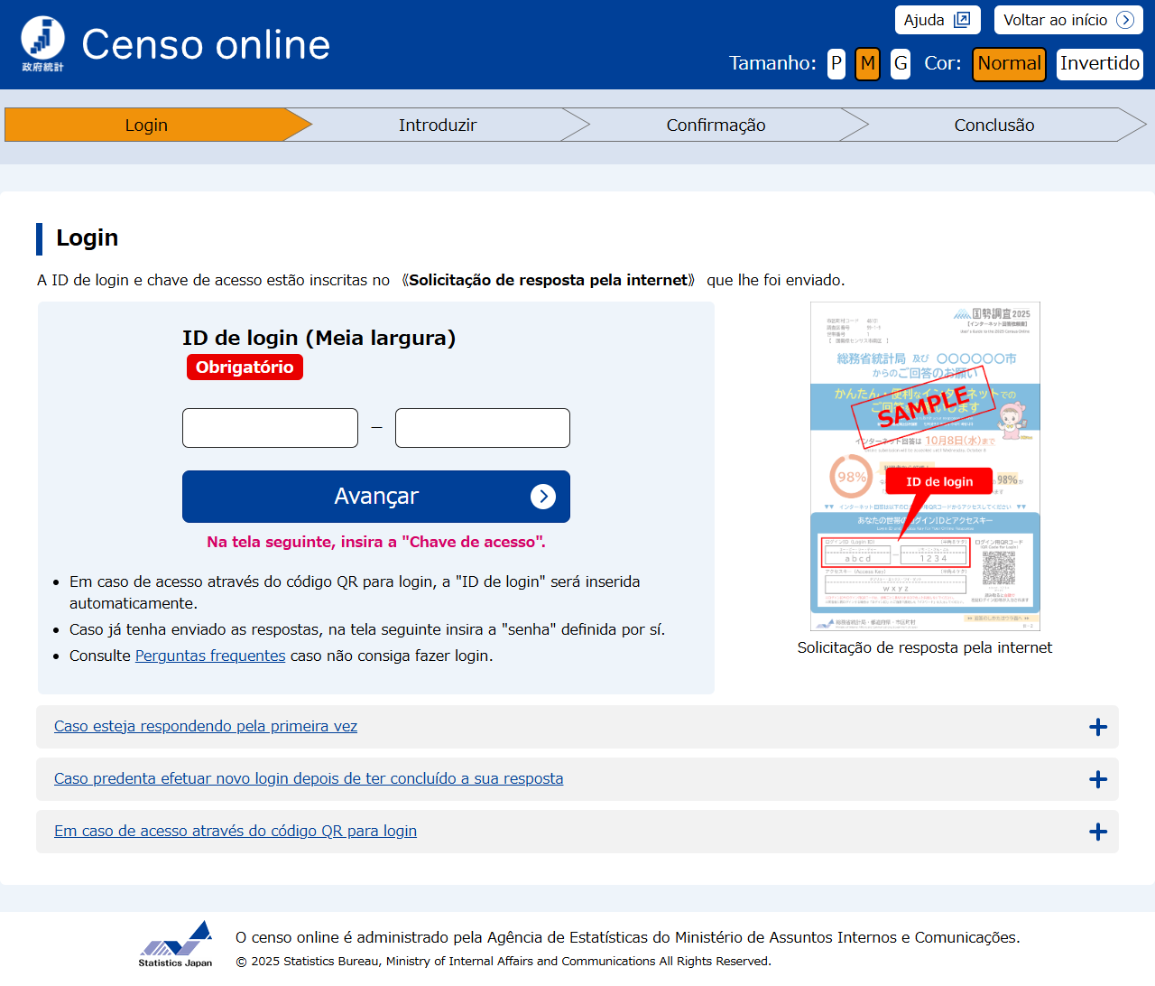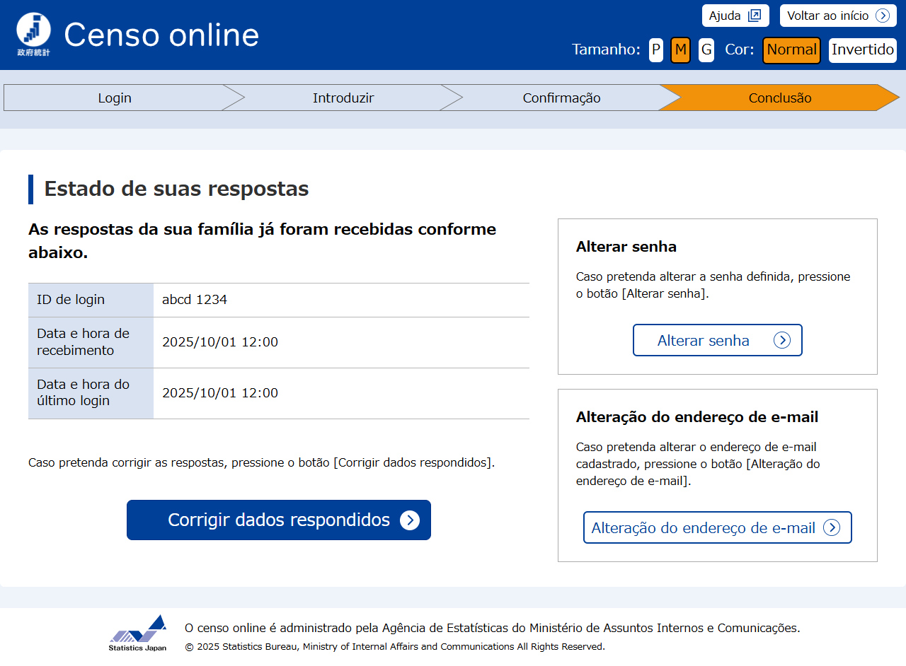 - I"Censo online" designa o sistema de informações para processar as respostas fornecidas pela internet ao Censo Populacional de 2025 realizado pela Agência de Estatísticas do Ministério de Assuntos Internos e Comunicações.