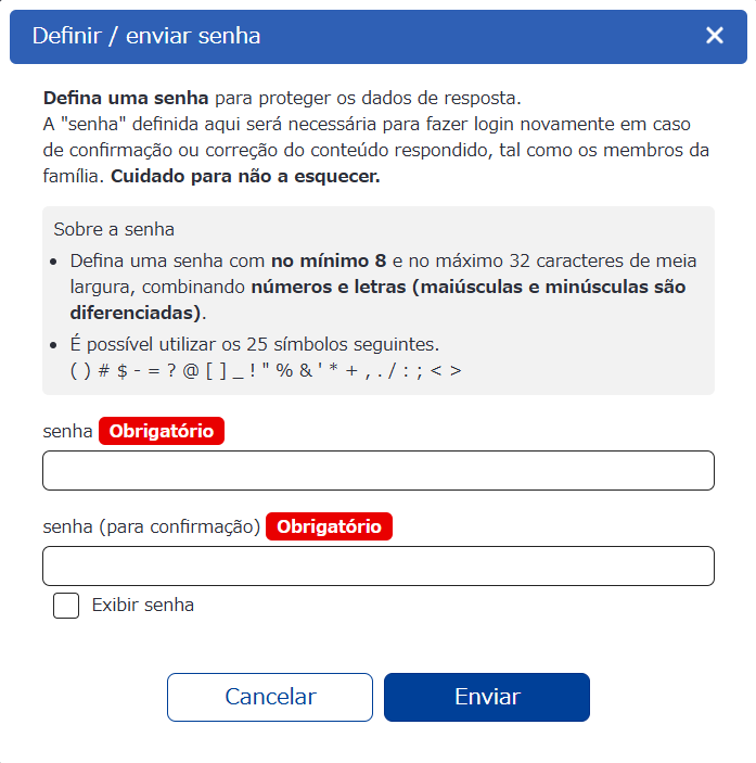 - V"senha" designa a sequência de caracteres definida pelo próprio usuário do Sistema e utilizada tanto para certificação do usuário do Sistema ao corrigir o conteúdo das respostas quanto para proteção do conteúdo das respostas.