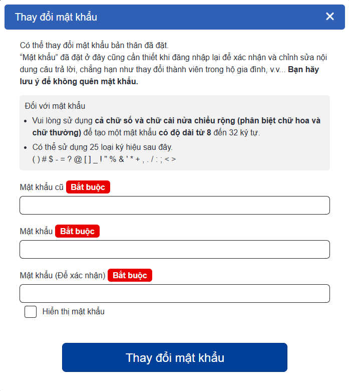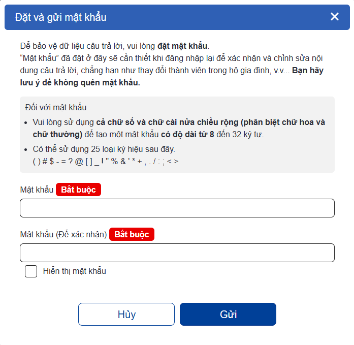 - 5. “Mật khẩu” là chuỗi ký tự do người dùng hệ thống tự đặt dùng để bảo vệ nội dung câu trả lời và xác thực khi người dùng hệ thống chỉnh sửa nội dung câu trả lời.