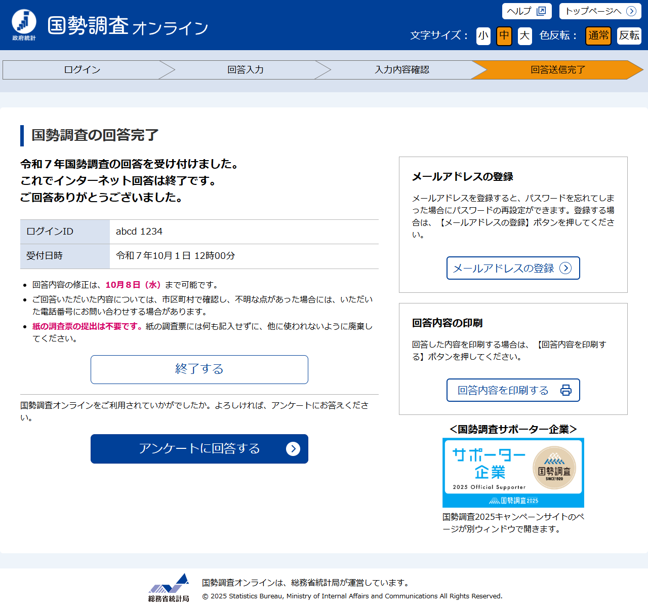 - 一本システムを国勢調査及びこれに付随するアンケートへの回答以外の目的で利用すること